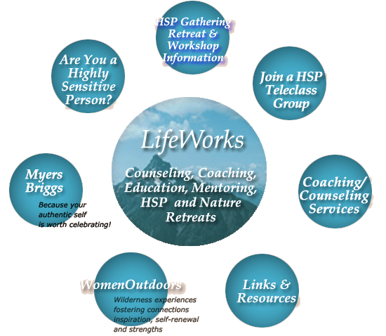 Jacquelyn is an HSP and a Licensed Professional Counselor, since 1993, and although she offers counseling, psychotherapy, mentoring, education, consultation and coaching exclusively for highly sensitive people, she is not currently taking any new clients. Feel free to inquire about possible changes to her client intake. Her main work is the continuation of the uniquely successful HSP Gathering RetreatsSince 2001 which she co-founded with Dr. Elaine Aron.